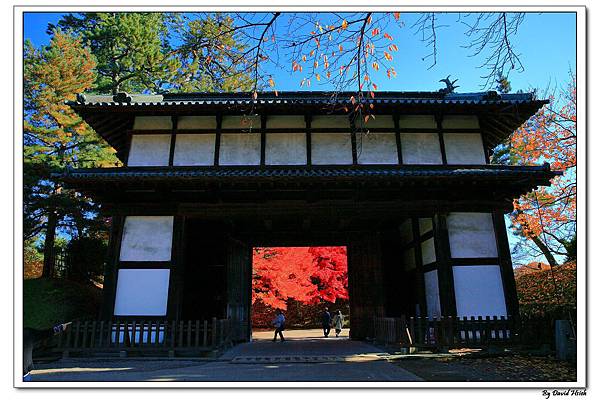 追手門, 門外那一片紅葉狂放的爆發中, 令人為之驚豔, 也讓很多人著足欣賞,, 流連忘返