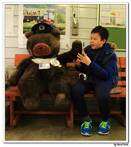 結果我們在阿仁和下車. 下車後車站內有一隻小熊站長.